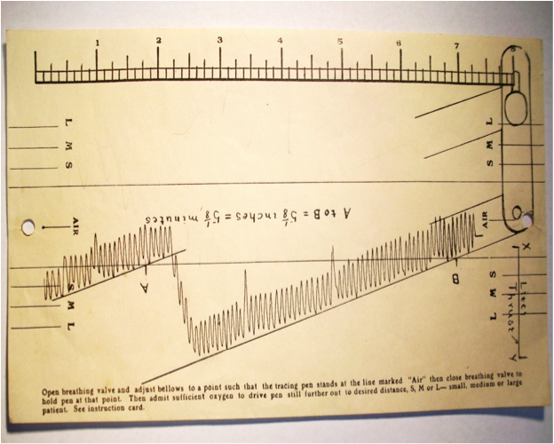 Respirometers like The Jones Basal Motor were used to understand more about patients’ respiratory patterns, volumes within the lungs, and to monitor the health of an individual by using known information as a baseline such as height, weight, sex and age. Using a respirometer to gain baseline measurements allows medical researchers and practitioners to see how changes in environmental or genetic factors can impact respiration. (Such instances give information about the respiratory rate of the patient being studied.) It can also give data about how respiration takes place, which can conclude whether an individual has a defective respiration from anxiety or a leak in the system, or even from producing irregular breaths. Some patterns can quite possibly be concluded as asthma.