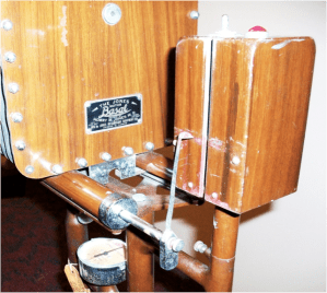 Respirometers commonly include: a seal-able metabolic chamber, oxygen sensor, a device for data recording, a thermometer to manage temperature, and valves to introduce gasses to patients. The Jones Basal Motor includes: a mouth piece, tubing that takes exhaled air into the motor, a small compact of alkali to help get rid of carbon dioxide and a rubber bag (known as the bellows) to allow for expiration and inspiration to contain oxygen supply. The Basal Motor also has a measuring apparatus for delivering oxygen into the rubber bag to measure an individual’s breathing rate and volume in his or her lungs. (See a YouTube video of the machine here.)