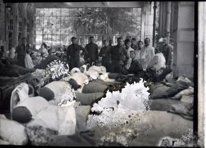The Melnick Medical Museum had a collection of approximately 75 glass lantern slides containing images taken throughout the training and operation of Base Hospital 31. Most likely, the photographer is man pictured below. This summer, the glass slides were cleaned and scanned. The originals were donated to the Mahoning Valley Historical Society, where they join other documentation on the Base Hospital.